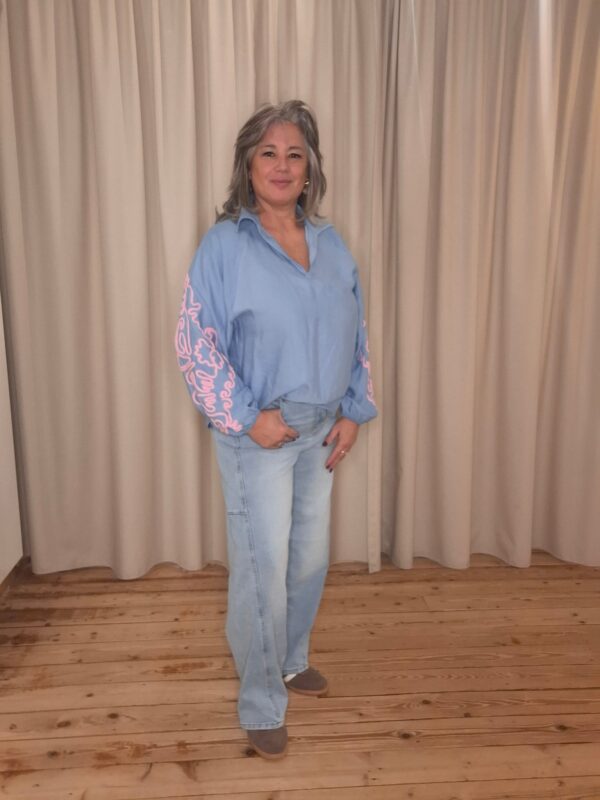 Deze blouse met kleurrijk borduursel op de mouwen geeft je look een speels en vrouwelijk touch.